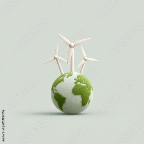 Fototapeta premium Innovative globe design featuring wind turbines and solar panels symbolizing...