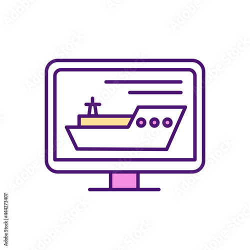 Obraz premium Innovative marine systems RGB color icon. Isolated vector illustration. Ocean behaviour prediction. Smart computer with artificial intelligence simple filled line drawing
