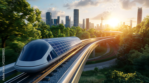 Fototapeta premium Innovative solar-powered rail systems transforming urban mobility in modern cities futuristic transport solutions eco-friendly infrastructure