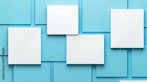 © Smaev, Fototapeta premium Innovative Tech Background featuring perfectly arranged glossy blocks with a blue hue, presented as a 3D render