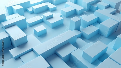 © Din Nasahrudin, Obraz premium Innovative Tech Background with Perfectly Arranged Glossy Blocks. Blue, 3D Render.