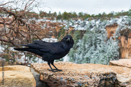 © TSchofield, Obraz premium Inquisitive raven sits on a ledge in Grand Canyon National Park
