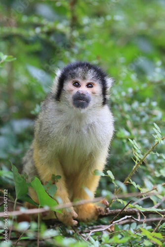 Obraz premium Inqusitive South American Black capped squirrel monkey (Saimiri boliviensis)...