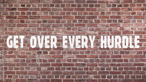 © Halytskyi Olexandr, Fototapeta premium Inscription «get over every hurdle» on old brickwork