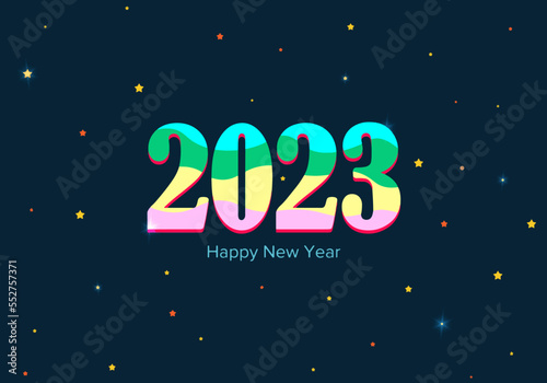 Fototapeta premium inscription of new year 2023 with color numbers and shining stars