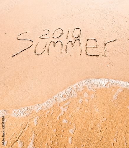 © kelley, Fototapeta premium Inscription on wet sand "Summer 2010"