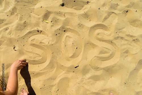 Obraz premium inscription SOS in the sand on the beach