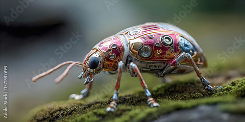 Fototapeta premium Insect Bot Clockwork Hopper: The Echo of Springs, ai generated.
