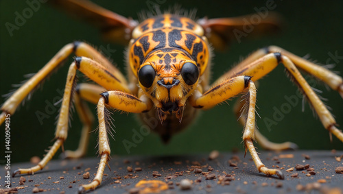 © Yosich1961, Fototapeta premium Insect close-up observing on a dark surface