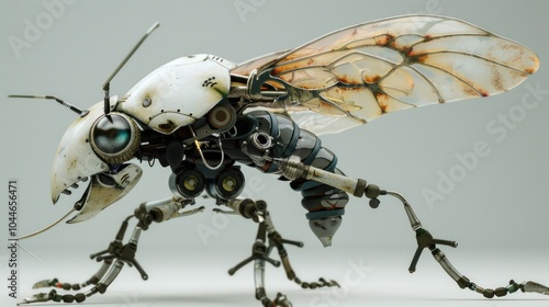 Fototapeta premium Insect cyborg that has compound eyes and articulated limbs, AI generated image