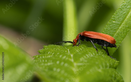 Fototapeta premium insecta, käfer, badgered, natur, blatt, makro, green, rot, tier, pests, herrgottskäfer,