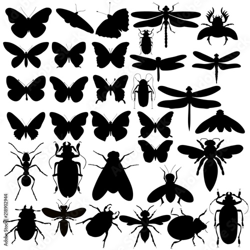 Naklejka premium insects, beetles, butterflies, set of silhouettes