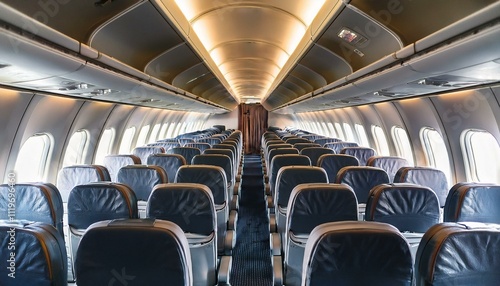 © AITOMF, Fototapeta premium Inside a plane cabin with rows of seats