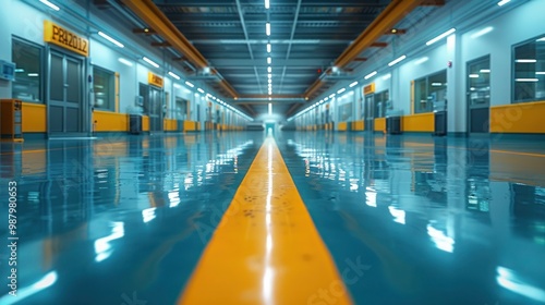 © Tuong, Fototapeta premium Inside a Semiconductor Mass Production Factory: A View of the Interior with No One in Sight
