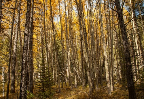 © Nikki, Fototapeta premium Inside a yellow aspen grove in Beartooth Mountains, Montana