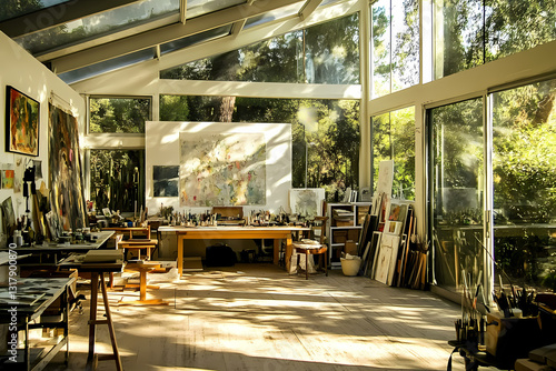 © Sekai, Naklejka premium Inside an Airy Art Studio with Open Space and Natural Light for Creative Inspiration