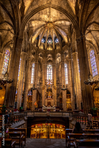 Obraz premium Inside Barcelona's famous gothic cathedral.