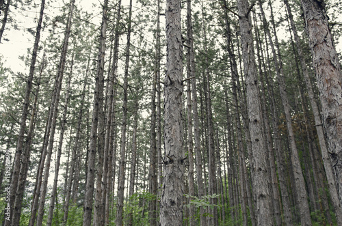 Fototapeta premium Inside Deep Dark Pine Tree Forest
