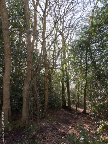 Fototapeta premium inside forest sunny beam trees green path woodland nature