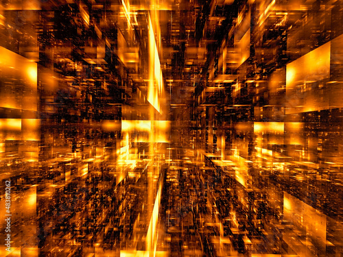 © olgasalt, Naklejka premium Inside futuristic golden room - abstract 3d illustration