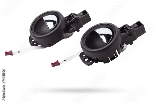 © Aleksandr Kondratov, Obraz premium Inside Handle door opening in the vehicle with metal element on white isolated background. Spare parts auto catalog.