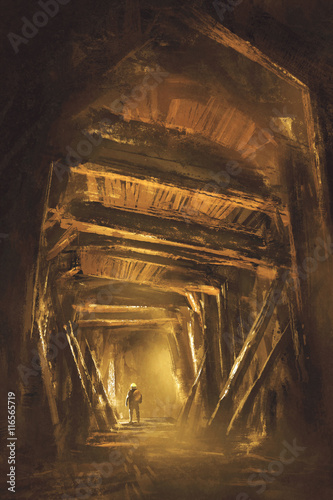 © grandfailure, Obraz premium inside of the mine shaft,illustration,digital painting
