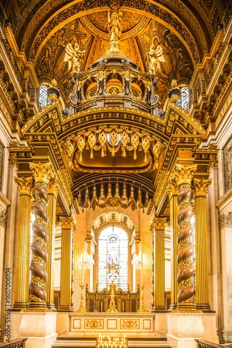 Obraz premium Inside St Paul's Cathedral in London, interior building details.