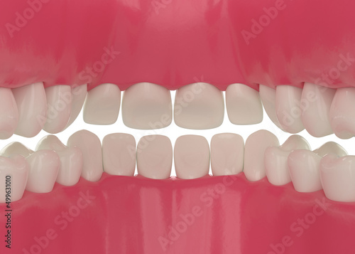 © Orlando Inojosa, Obraz premium inside view inside a human mouth with aligned healthy white teeth 3d illustration