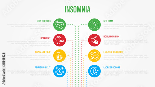 Naklejka premium Insomnia infographics with thin line icons in circles and copy space near....