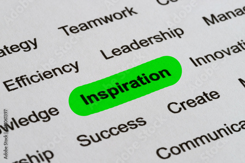Fototapeta premium Inspiration - Business Buzzwords, printed on white paper and highlighted