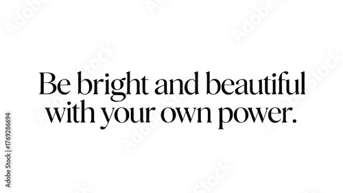© ATime7Day, Naklejka premium Inspirational encouraging words on transparency background. beautiful motivational quote be bright and beautiful with your own power for self love and inner strength