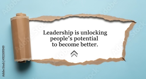 © Asabe, Obraz premium Inspirational quote leadership is unlocking peoples potential to become better on blue background