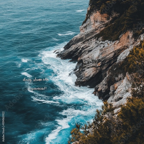 Obraz premium Inspirational quote over a scenic coastal cliff with waves crashing, creating...