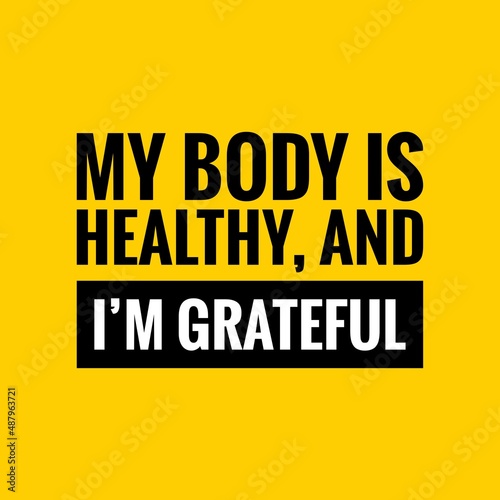 © Divyesh, Fototapeta premium Inspirational quote saying “My body is healthy, and I’m grateful” on yellow background