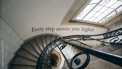 © Zulfadhli, Obraz premium Inspirational staircase with motivational quote on wall interior design