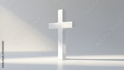 Naklejka premium Inspirational White Cross with Soft Shadow and Clean Backdrop