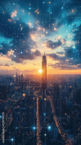 © Muhawaii, Obraz premium Inspire a futuristic cityscape symbolizing financial inclusion
