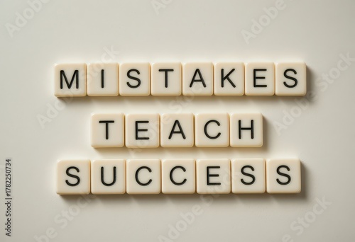 © AlAfiq, Naklejka premium Inspiring Words on Mistakes and Success in Creative Flat Lay Arrangement