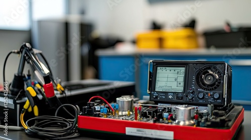 Fototapeta premium Installed air conditioning unit operating normally with attached testing...