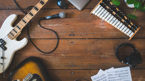 © Michał Woźniak, Fototapeta premium Instruments background topdown wide