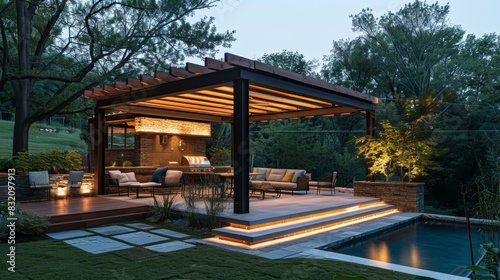 © Kristian, Fototapeta premium Integrated Lighting with Recessed LED and Strip Lights in Pergola