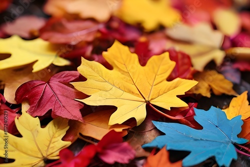 Fototapeta premium Intense Autumn: Stunning Maple Leaves in Vibrant Hues, A-generated photo of...