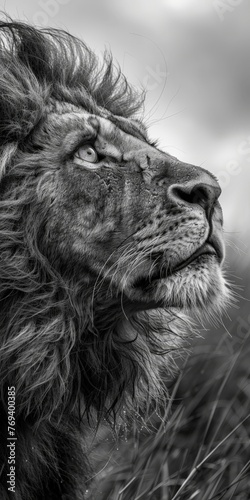 © Salander Studio, Naklejka premium intense black and white wildlife photography of a lion