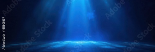 Fototapeta premium Intense blue laser beam cuts through dark stage, blue, focused