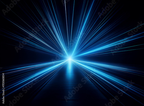 Obraz premium Intense blue light streaks radiate from a central point, creating a dynamic,...