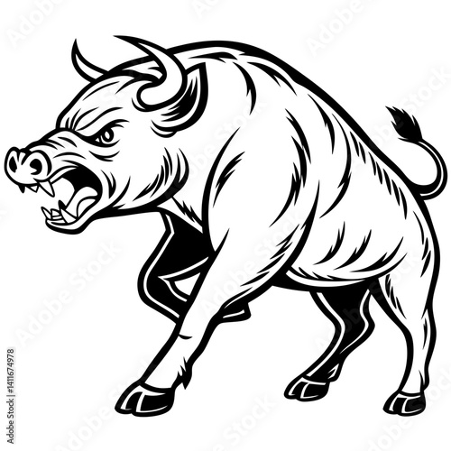 Fototapeta premium Intense Boar Illustration for Tattoos and Graphic Designs Featuring Bold...