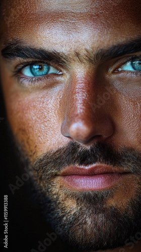© BlackBird Studio, Obraz premium Intense Close-Up of a Handsome Male Face