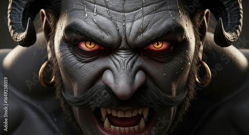 © MST, Naklejka premium Intense Close Up Portrait of a Demonic Being with Glowing Eyes and Horns