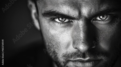 © vadosloginov, Obraz premium Intense close-up portrait of serious young man in studio