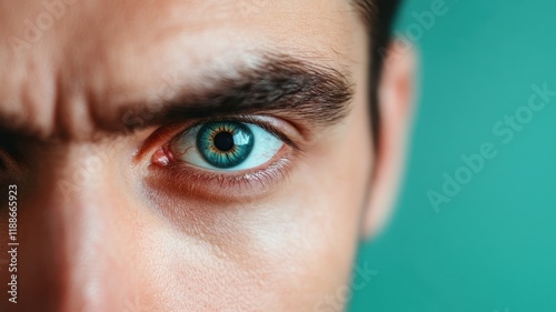 Fototapeta premium Intense closeup of businessman's bloodshot eyes office portrait professional...